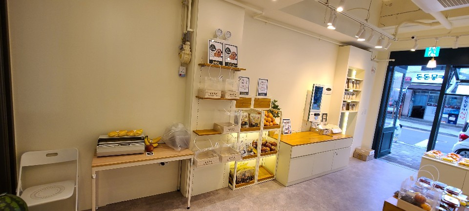 서울 목동 과일가게 인테리어 8평 시공현장 홍보영상 홈코디 분석 내용 무인상점으로 키오스크 설치 벽체는 도장 과일진열대는 각파이프로 뼈대을 제작후 삼나무 집성목으로 바구니 제작 진열대는 LED조명 바닥은 데코타일시공 외부는 갈바시공 창문은 유압쇼바을 달아서 두번 접히게 제작 가마찌도어 제작 빠른시공과 저렴한 가격 리뷰 0 포토 리뷰만 보기 목록