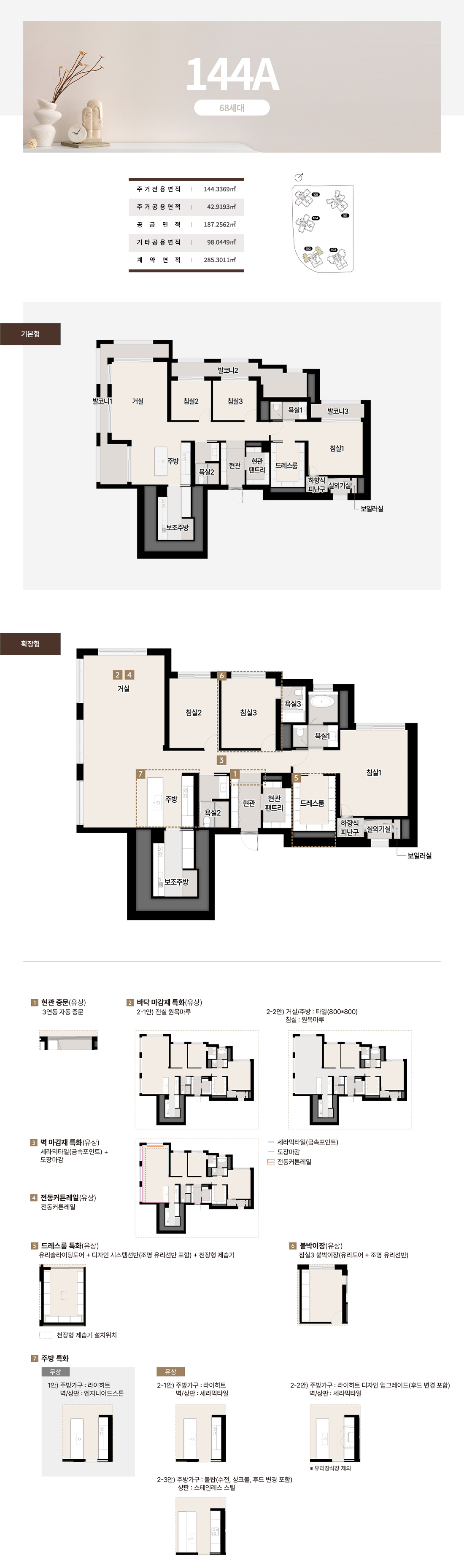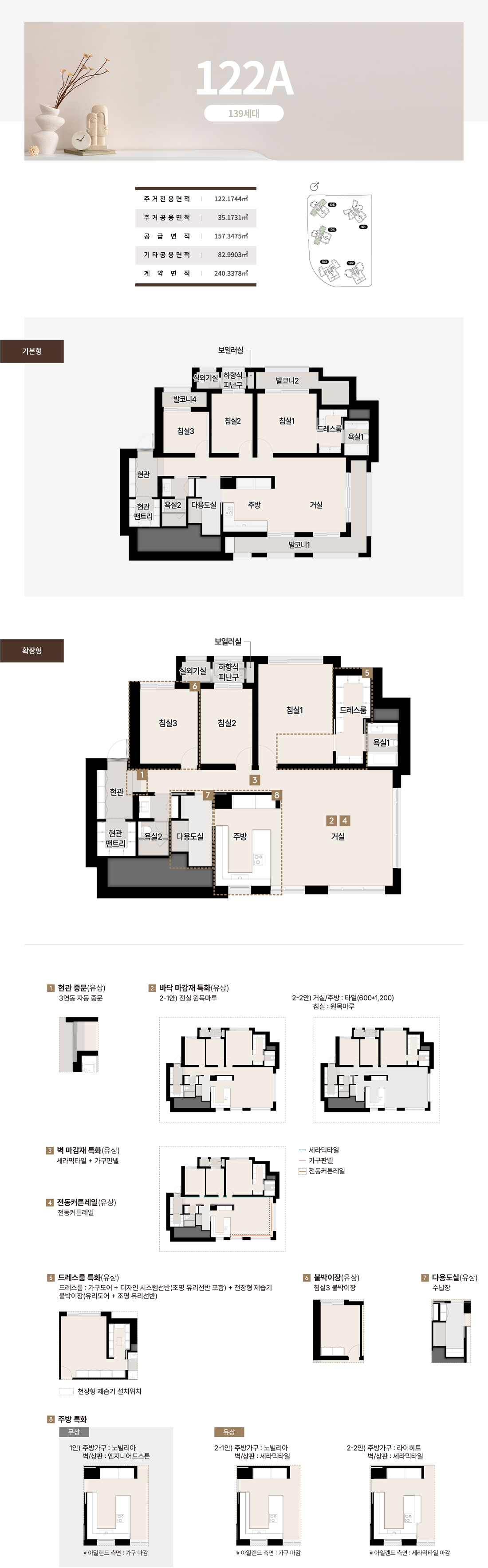 호라이즌 존의 84~112는 타워형 LDK로 개방감을 극대화하고 팬트리와 드레스룸으로 수납 스트레스를 낮췄습니다. 142와 144의 블러쉬 타입은 거실 이면 개방과 보조주방, 확장 드레스 구성을 통해 가족 동선을 유연하게 연결합니다. 더피크 177과 182는 대형 수납과 광폭 거실, 복합 수납존으로 체감면적을 끌어올렸고, 227~243 펜트하우스는 희소성과 실용을 동시에 설계했습니다. 실제 견본주택에서 가장 공감이 컸던 지점은 발코니와 드레스, 팬트리의 조합이 일상 동선을 간결하게 만든다는 점이었습니다. 이 전개는 써밋 리미티드 남천의 상품성이 왜 높은지 잘 보여줍니다.