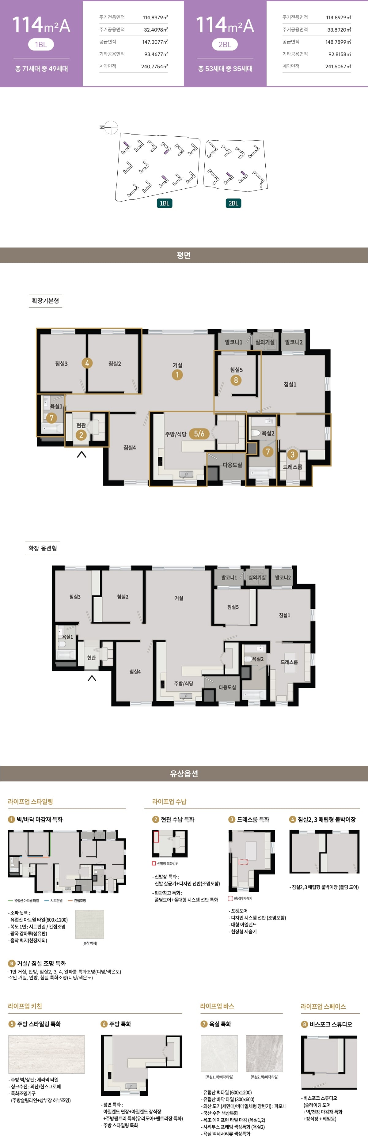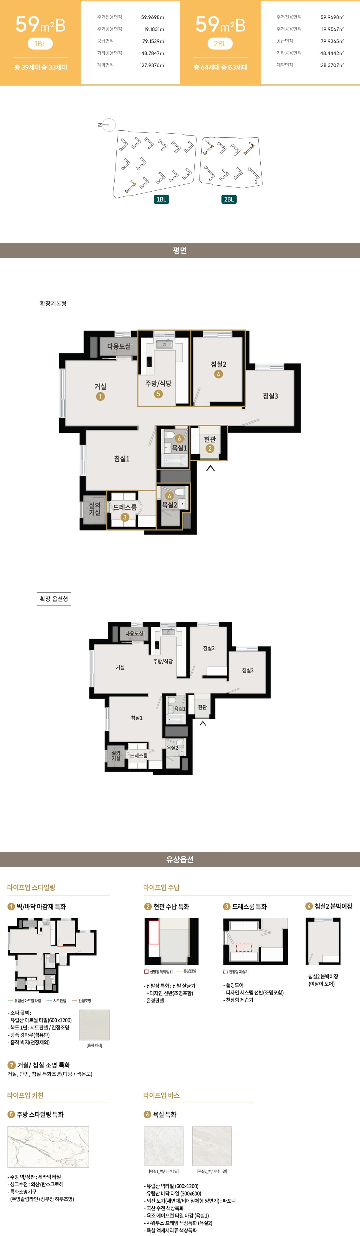 전용면적 오십구, 팔십사, 구십구, 백십사, 백사십오 제곱미터 등 폭넓은 라인업이 제공되어 다양한 가족 형태를 포괄합니다. 오십구는 수납 특화와 동선 압축으로 관리 효율을 높였고, 팔십사는 사면 개방을 고려한 판상형 위주 설계로 채광과 통풍, 가구 배치 자유도를 확보했습니다. 일부 타입의 알파룸은 서재, 취미실, 드레스룸 등으로 손쉽게 전환할 수 있어 생애 주기에 맞춘 변화가 가능합니다. 구십구 이상 평형은 대형 팬트리와 드레스룸, 다목적실을 통해 계절 수납과 가족별 영역 분리가 용이합니다. 주방은 기역자와 디자형 레이아웃, 아일랜드 구성으로 조리와 보관, 식사의 흐름을 매끄럽게 연결합니다. 이처럼 청주 푸르지오 자이는 면적대별로 확실한 장점을 갖춘 평면 체계를 제시합니다.